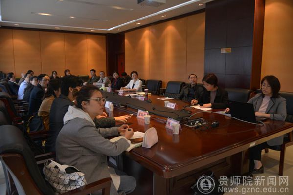 铜仁学院教务处处长龚静(右一)介绍人才培养的情况