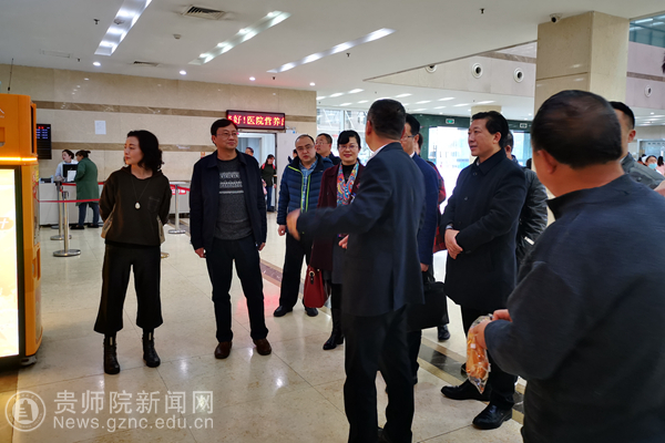 本网讯 为进一步转变观念,增强后勤服务意识,提高后勤管理水平,提升资产运行效率,为进一步促进学校办学水平和服务水平提供坚强的后勤保障,1月7日下午副校长余维祥,校纪委书记邬卫东,副校长熊世桓率bat365官网审计处、计财处、国资处、后勤处、继续教育学院等部门主要负责人一行赴贵州省人民医院考察学习,学习省医在后勤服务、资产管理、食堂经营、三产创收、财务管理、专项绩效分配等方面取得的经验和成果,贵州省人民医院副院长周辉等陪同考察座谈交流。