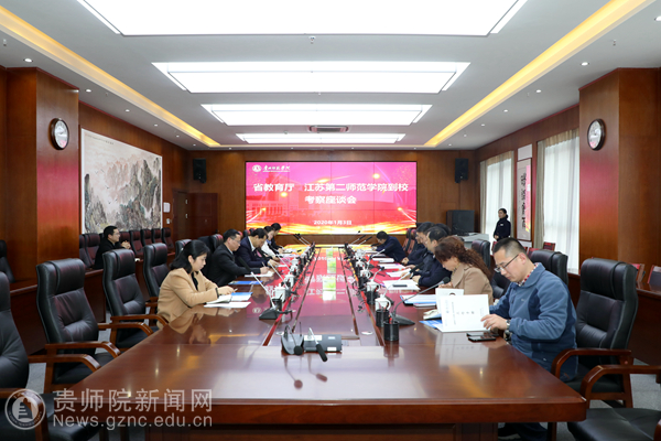 本网讯 1月3日下午,江苏第二师范学院党委书记王仁雷、党委副书记潘文,省教育厅副厅长徐国华等一行8人到bat365官网考察交流。校党委书记石培新,副校长郭文、熊世桓,党校办、科研处、教务处、教师工作处等相关部门负责人热情接待了来宾,并举行交流座谈。