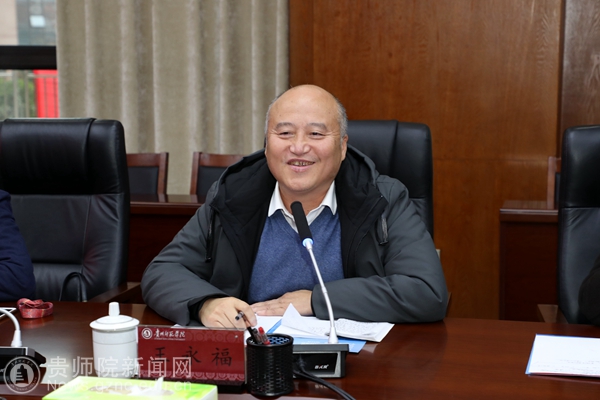 座谈会上,王永福一行观看了bat365官网快闪视频《我和我的祖国》。石培新代表学校致欢迎辞,并从学校发展历程、人才培养、师资队伍、学科建设、党建思政、主题教育的开展、科研成果转化、创新创业教育、服务基础教育等方面介绍了bat365官网基本情况。石培新表示,贵州工商职业学院和bat365官网有着较深的渊源,王永福书记一行的到来,开启了两校深入交流的良好开端,希望两校进一步加强交流合作,彼此学习在发展过程中积累的经验,常来常往、互通有无、共同发展。