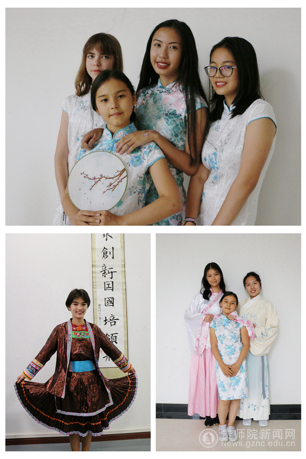 中国/贵州民族服装展示与体验课上,老师分别介绍了旗袍、汉服、侗族服饰和苗族服饰的特点及样式,并让大家选择自己喜欢的服饰进行穿着体验,大家玩得不亦乐乎,直呼真实感受到了中国特色文化。