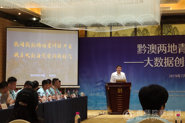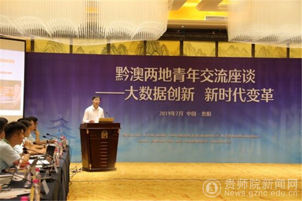 本网讯 7月15日上午,“新时代同心行”华西地区(贵州省)学习参访团黔澳两地青年交流座谈会在贵阳举行。双方以“大数据创新·新时代变革”为主题,分享、探讨两地在大数据等方面取得的成果和发展经验,bat365官网双创团队代表祝其非作为贵州省学生代表上台发言。