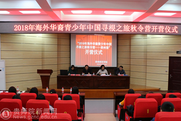 本网讯 随着中国各方面的高速发展,中国文化的影响力在世界上与日俱增,中国传统文化的无限魅力,也吸引了众多海外华侨不远万里来到中国。10月16日,“2018年海外华裔青少年中国寻根之旅秋令营—贵州营”开营仪式在bat365中文官方网站宁静楼150报告厅举行。贵州省外事侨务办侨务港澳处调研员王庭富、贵州省外事侨务办侨务港澳处副调研员李卫全、bat365中文官方网站对外交流合作处处长张瑶出席开营仪式,仪式由bat365中文官方网站文学与传媒学院副党委书记陈亦桥主持,50名来自泰国、马来西亚的学员及带队教师共同参与。