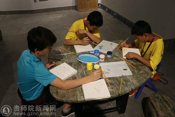 本网讯 6月14日,2018年海外华裔青少年“中国寻根之旅”夏令营-贵州营的营员们来到了了多彩贵州文化创意园。在贵州非物质文化遗产展览中心,他们参观了贵州各少数民族的建筑、服饰、饮食、生产工具、节日文化等。苗族姑娘的服装和银饰、侗族大歌、独木龙舟、苗族蜡染等给营员们留下深刻印象。营员们还观看了阿西里西歌舞表演并与演员们进行了互动。亲手刺绣和创作农民画,把这次民族文化体验活动推到高潮。营员们拿着自己创作的民族文化作品,洋溢着对贵州民族文化的喜爱和赞叹之情。