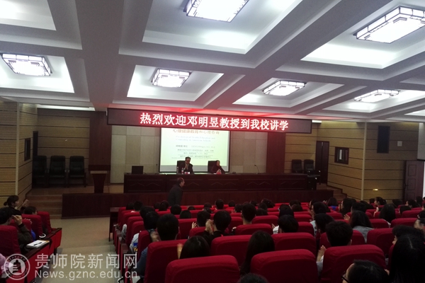 邓明昱在讲座开始前简要介绍自己的经历及回国讲学目的。随后,邓教授从“美国中小学心理健康的现状与政策”、“美国中小学心理健康教育的课程设置”、“美国中小学的心理咨询机构和学校心理师”、“美国高中的 Peer Counseling( 同伴辅导)”、“中美学校心理健康教育的比较”五个方面深入浅出的讲析了美国中小学的心理健康教育和心理咨询的现状与理念,最后邓教授针对同学提出的就自闭症、孤独症、同伴辅导、亲子沟通、留守儿童的心理健康、恐怖症等心理问题进行了深入而精辟的回答。使师生对美国中小学的心理健康教育和心理咨询有了全新而系统的认识,在场的师生们都受益匪浅。在回答最后一个同学提问时,邓教授用“整合、短程、寻证”总结学习心理流派的精华。