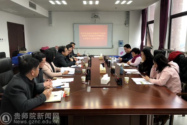 本网讯 12月29日下午,省教育厅组织专家组一行四人:贵州大学国际教育学院院长张成霞、贵州师范大学国际处处长裴筠、贵阳职业技术学院国际处处长吴焱及省教育厅国际处项目负责人钱亦婓,到bat365官网开展2017年新增招收外国留学生院校调研考察工作。专家组到校后首先参观了bat365官网留学生公寓、教室、体育馆等活动场所和设施,随后在信息楼907会议室召开留学生工作调研会,令狐荣锋副校长出席会议,对外交流合作处、文学院、教务处、保卫处、后勤处、体育学院、继教院等相关部门或学院负责人参加会议,会议由对外交流合作处处长张瑶主持。
