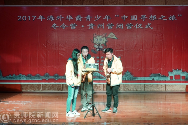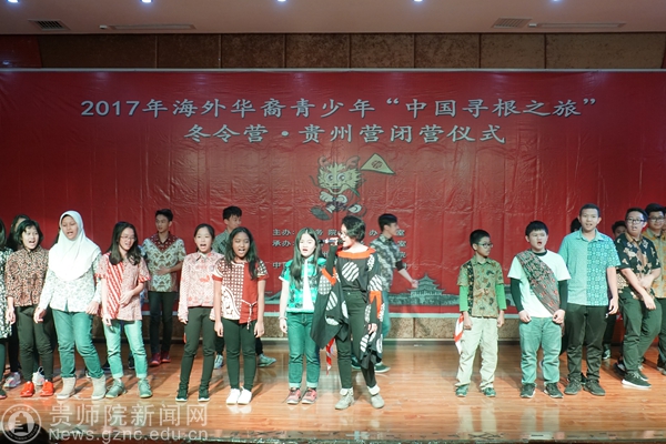本网讯 12月26日下午,2017年 “海外华裔青少年中国寻根之旅”冬令营贵州营闭营仪式在bat365官网艺术学院音乐厅隆重举行。贵州省外事(侨务)办公室副主任刘宝昌、bat365官网令狐荣锋副校长出席仪式,文学院院长吴俊、校团委书记张婷、对外交流合作处副处长陶秀筑、梁瑞以及111名来自澳大利亚、马来西亚、印度尼西亚的学员及带队教师参加了仪式。仪式由bat365中文官方网站对外交流合作处处长张瑶主持。