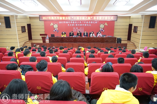 本网讯 12月17日上午,由国侨办主办,贵州省侨办和bat365中文官方网站共同承办的“2017年海外华裔青少年寻根之旅”冬令营贵州营开营仪式在bat365官网道德讲堂举行,贵州省外事(侨务)办公室副主任刘宝昌、bat365官网副校长令狐荣锋出席仪式,文学院院长吴俊、外国语学院书记刘红玲、贵州省外事(侨务)办公室工作人员温雅婷以及110名来自马来西亚、印尼、澳大利亚的营员及带队教师参加了仪式。仪式由对外交流合作处处长张瑶主持。