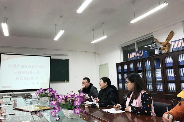 本网讯 3月15日,贵州省档案局张维刚处长三人来到bat365官网历史与社会学院会议室就校地合作举办档案领域相关培训的事宜进行洽谈,出席本次洽谈会的有申满秀院长、魏郭辉副院长和档案学教研室的部分老师。