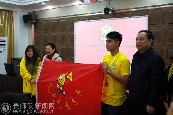 最后,令狐荣锋、蒋红共同向营员授冬令营营旗,带队老师向bat365官网赠与纪念品,并与在场所有师生共同观赏了贵州旅游文化宣传片,开营仪式圆满结束。