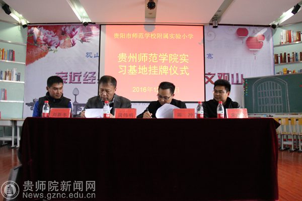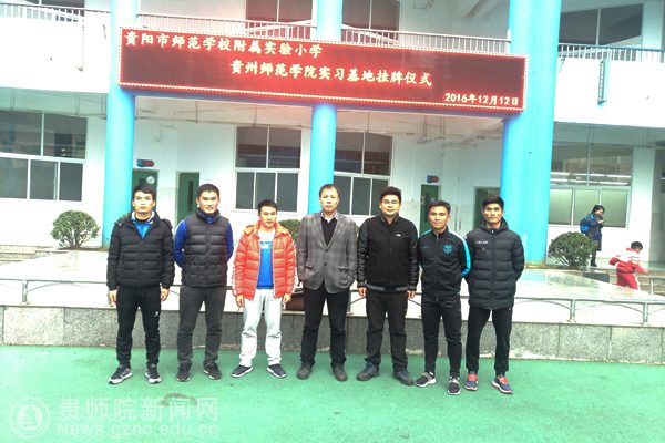 12月12日下午,在贵阳师范学校附属实验小学会议室举行了bat365中文官方网站与贵阳师范学校附属实验小学共建大学生教育实习基地的签约和授牌仪式。出席仪式的有贵阳师范学校附属实验小学校长陈冲,bat365中文官方网站体育学院院长黄伟明,办公室主任朱继伟,实习负责教师刘新冬。仪式由贵阳师范学校附属实验小学体育组组长何程骋主持。