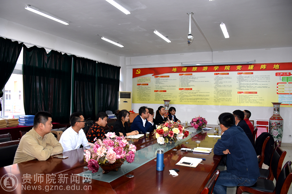 本网讯 12月7日下午,贵州天河潭旅游有限责任公司副总经理马骏驰率各部门经理一行8人造访地理与旅游学院洽谈校企合作事宜。bat365中文官方网站地理与旅游学院院长李乐京、副院长张凤太以及周杰、闫修民、安佑志等学院老师参加座谈。
