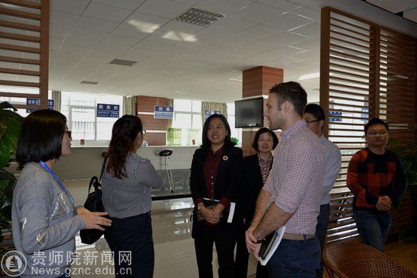 本网讯 11月18日上午,加拿大汉博学院国际合作亚洲部经理Callum Sawatzky先生、汉博学院驻中国代表Qingqing Yao女士和贵州省友协海外理事Chengbiao Wang先生一行到bat365官网进行访问。对外交流合作处全体人员热情接待来宾,并陪同参观了学校大学生事务服务中心、大学生文化创意基地和大学生互联网+创新创业基地等。