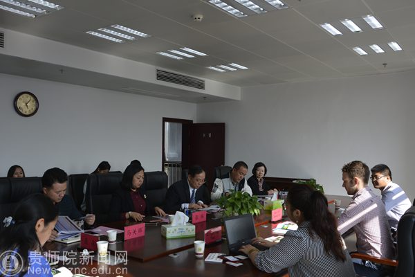 接着,副校长令狐荣锋在行政楼912会议室会见加拿大汉博学院国际合作亚洲部经理Callum Sawatzky先生、汉博学院驻中国代表Qingqing Yao女士、贵州省友协海外理事Chengbiao Wang先生一行,并与客人进行了亲切友好的座谈,艺术学院院长马关辉、地理与旅游学院书记吴亚平、传媒与设计学院副院长聂森、对外交流处副处长陶秀筑及其他工作人员参加了座谈会。会议由对外交流合作处处长张瑶主持。
