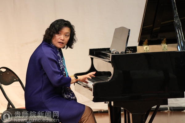 上午,张芳在逸夫楼演播厅举行讲座。她从钢琴演奏的技法、钢琴即兴伴奏等方面指出钢琴技巧的提升在于练习和领悟,并讲述了自己在音乐方面独特的见解。讲座过程中,张芳邀请同学上台演奏,根据学生的演奏水平对他们进行了专业的点评,指出了他们自身的优缺点和今后努力的方向。