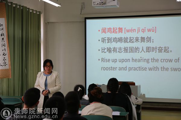 10月13号下午,赵景飞博士在《贵州自然与人文知识》课上引经据典地向营员们介绍贵州美丽的自然风光和与多姿多彩的民族人文风景;10月14日上午,卓婷老师的《汉语知识专题》通过课外文化拓展,教授《送别》歌曲,并让营员们穿上汉服,感受中国的传统文化,令营员们兴趣盎然;下午,陈火青老师的《中国书法教学专题》,把书法理论与实践相结合,让营员们通过学习写毛笔字,体会中国书法的文化内涵;10月15日上午,由具有多年国际汉语教育的徐望老师为同学们上了《汉语听说能力训练专题》,徐望老师上课生动有趣,层层递进,兼顾各个语言层次的学生,让每个营员都学有所得。徐望老师还拓展课程,给营员教授编织中国结;下午,曹月勇教授最具中国特色的《中国传统武术》,营员们认真学习棍术,在实践中体验了中国功夫。