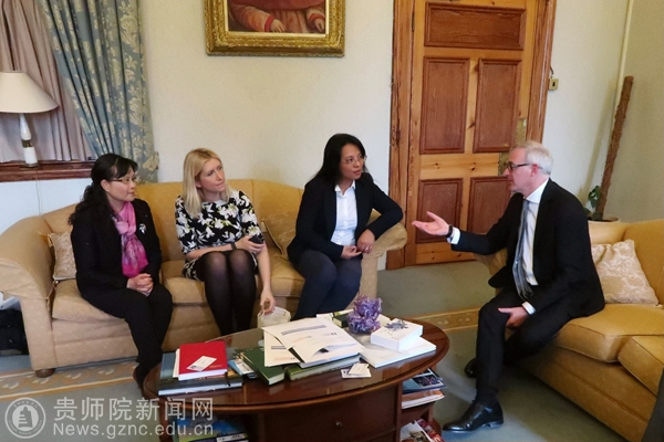 10月15日,郭文一行访问了爱尔兰利莫瑞克大学,同样与副校长Eugene Wall先生进行了亲切交流并签署了两校合作备忘录,与校长助理Dr Angela Canny、国际处处长Holly女士就教师访学等具体合作项目进行了深入探讨。分别与文学院、艺术学院、地理学院、数学学院、教育学院的院长和教授们就两国高等教育及基础教育理念和行为进行了交流,在充分交谈的基础上,双方均表达了强烈的合作愿望。在教育学院考察时,郭文副校长还亲自聆听了该院承担的中学教师培训课程,并与爱尔兰基础教育的教师进行了互动。