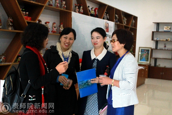 本网讯 10月10日上午,贵州省文化厅领导和非物质文化遗产传承人群研修培训班(皮纸制作类)学员一行人来bat365官网参观大学生文化创意基地。校党委副书记令狐彩桃、副校长何林、校团委书记张婷陪同参观。由校团委副书记傅小芳进行讲解。
