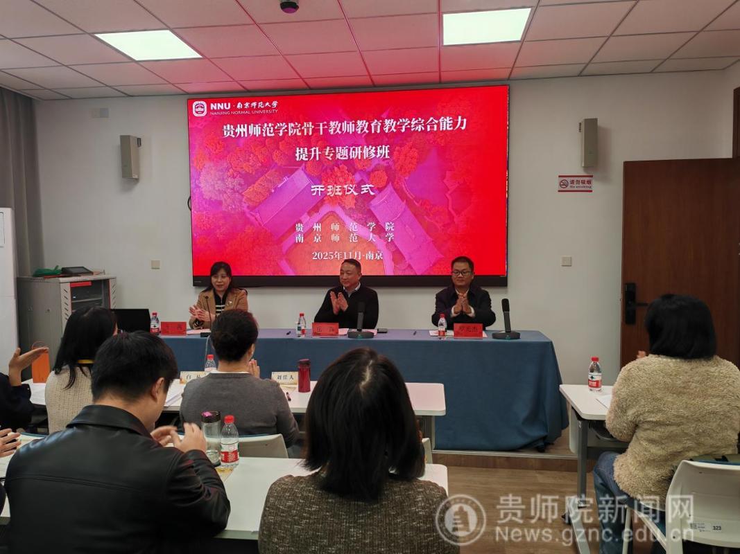 本网讯 11月23日至11月29日,bat365中文官方网站骨干教师教育教学综合能力提升专题研修班在南京师范大学顺利举办。来自全校省级教学、青教赛、教创赛省级以上获奖教师、国家一流课程负责人、青年骨干教师及教学管理和教师培养培训相关部门负责人等47名教师齐聚“东方最美丽校园”——南京师范大学随园校区进行了为期7天的研修学习。11月24日,开班仪式在南京师范大学培训中心举行,南京师范大学党委常委、副校长岳嵩,bat365中文官方网站党委常委、副校长罗光杰出席开班仪式,开班仪式由校党委教师工作部部长王茜主持。