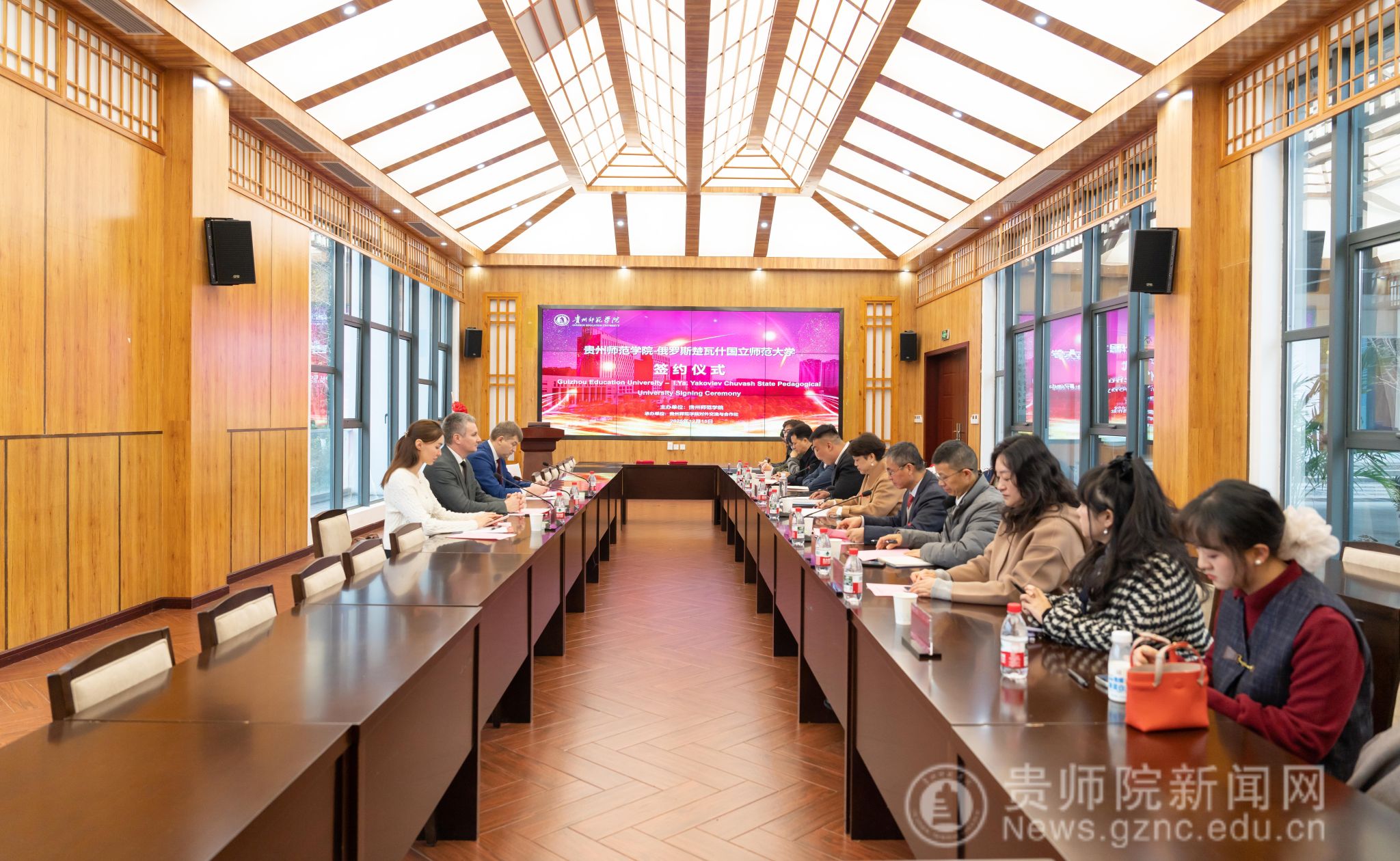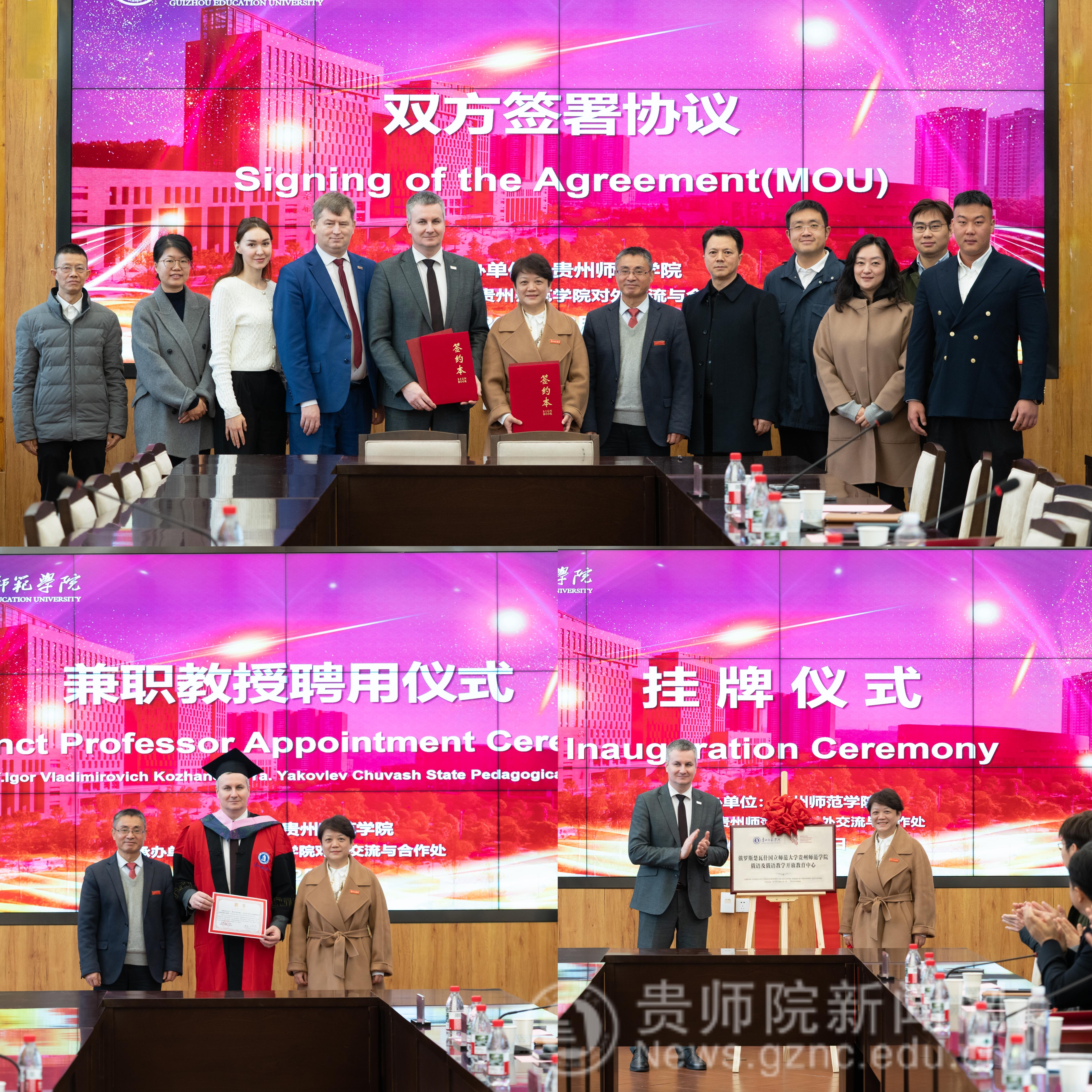 12月15日,俄罗斯楚瓦什国立师范大学校长率团莅临bat365官网参访并进行签约仪式,仪式在印山书院一楼山水讲堂举行。俄罗斯楚瓦什国立师范大学校长Igor Vladimirovich Kozhanov、bat365中文官方网站校长王蜀黔,校党委常委、副校长赵守盈(正厅长级)出席,俄罗斯楚瓦什国立师范大学科创处处长Kirillov Alexander Alekseevich、俄语教师Popova Daria Yuryevna 、bat365官网教务处处长、创新创业学院院长杜宏博、音乐舞蹈学院院长马关辉、教育科学学院宋万琚、对外交流与合作处副处长张彬(主持工作)、外国语学院副院长罗泳等相关人员参加了此次仪式。仪式由赵守盈主持。