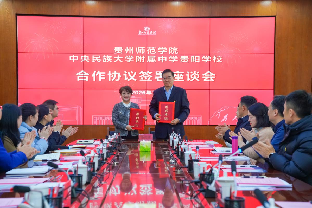 王蜀黔强调,此次合作是两校贯彻落实习近平总书记关于教育的重要论述、服务贵州高质量发展的具体行动,也是两校优势互补、协同发展的战略举措。学校将做好服务保障工作,确保各项合作落地生根、开花结果。希望双方以此次合作为纽带,进一步深化合作内涵、拓展合作领域、提升合作层次,在人才培养、师资建设、科研创新、文化传承等方面实现资源共享、优势互补、互利共赢,为贵州基础教育提质增效、民族地区人才培养和文化传承作出新的更大贡献。