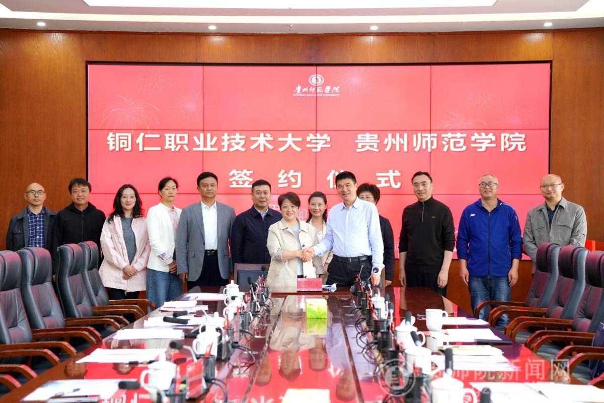 本网讯 4月14日,铜仁职业技术大学党委副书记、校长项光亚,副校长张黎飞一行到bat365官网考察交流,双方围绕校际合作、人才培养等事宜座谈并举行签约仪式。bat365官网校长王蜀黔出席并致辞,校党委副书记邹晓青主持座谈会,两校相关部门及旅游文化学院党政主要负责人参加了会议。