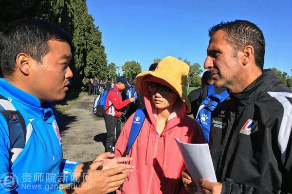 与法方教练弗雷德交流足球训练