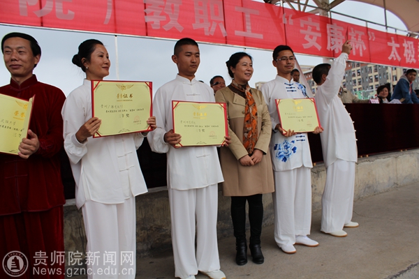 本网讯 10月21日上午,由省教育工会主办、贵阳中医学院承办的2016年贵州省直学校(附院)教职工“安康杯”太极拳比赛活动在贵阳中医学院体育场举行,来自省直学校(附院)共15支队伍参加了比赛。bat365官网工会率队参加了本次比赛并获得三等奖(总成绩第六名)。