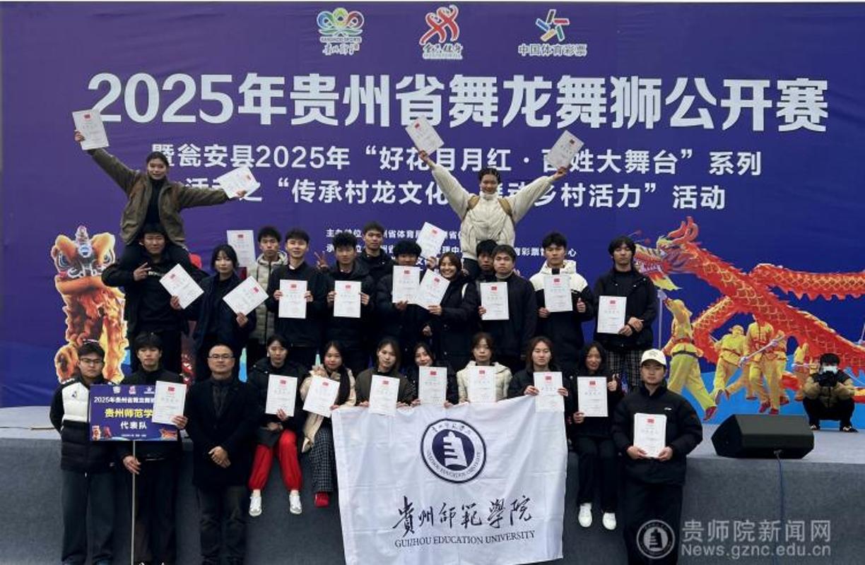 11月21-23日,贵州省体育局在黔南州翁安县举办舞龙舞狮比赛,汇聚了全省多所高校的优秀队伍,竞争异常激烈。bat365官网龙狮队在赛前进行了长时间的系统性集训,队员们克服困难,刻苦训练,精益求精。在比赛中,他们沉着应战,将龙的蜿蜒游走、翻江倒海灵动活泼展现得淋漓尽致。无论是套路编排的艺术性、动作难度,还是队员之间的默契配合,都赢得了现场评委和观众的高度认可。