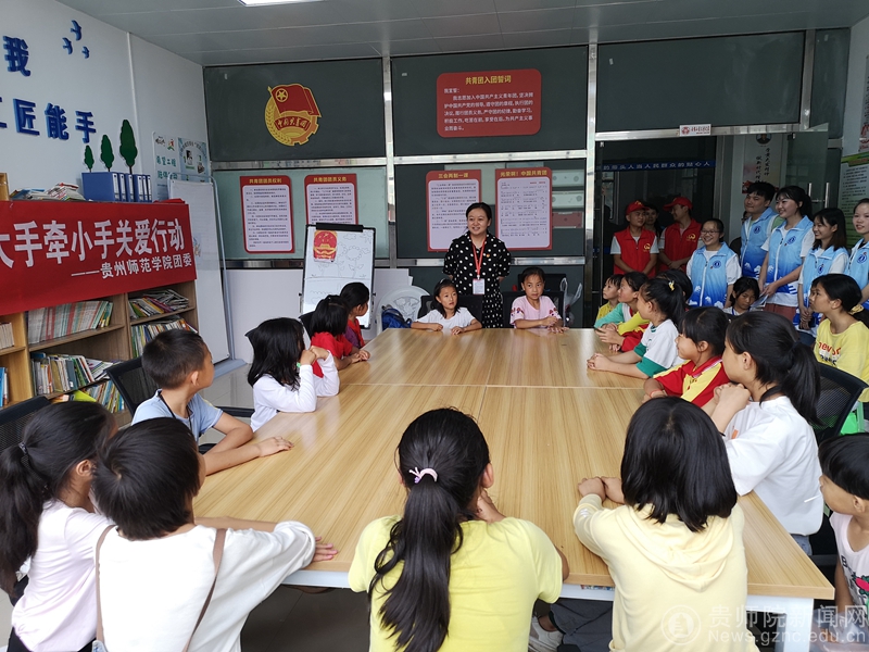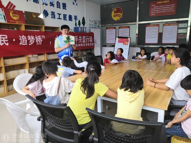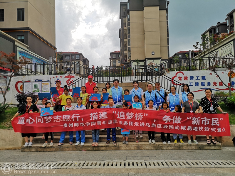 本网讯 7月1日下午,bat365官网团委组织青年志愿者前往乌当区云锦尚城易地扶贫安置点,开展“新市民·追梦桥”大手牵小手关爱行动。校团委副书记罗荣、张源,社会实践部部长张维域、办公室负责人余俊美,扶贫安置点20余名小朋友参与了此次活动。志愿服务团由教科院的周娅霞、唐莎、杨玉和历档学院的袁清林、薛金润、余翰祥六名同学组成。
