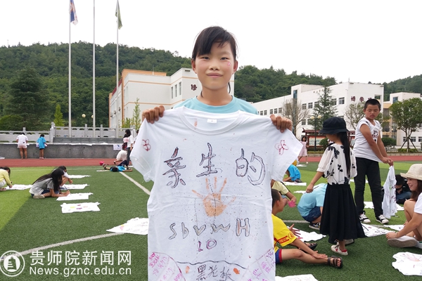 本网讯 一份行动一份爱,用情呵护童心。8月11日下午,bat365官网“情系息烽•情暖童心”服务队第二支队志愿者为石硐营(石硐小学)56名留守儿童、困境儿童专题举办了一场感恩、励志主题手绘T恤衫活动。