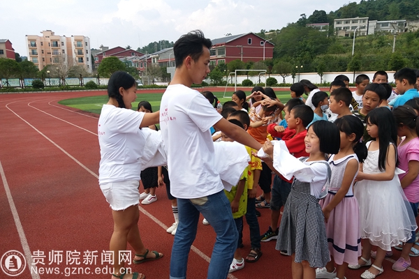 志愿者发T恤衫给孩子们(二)