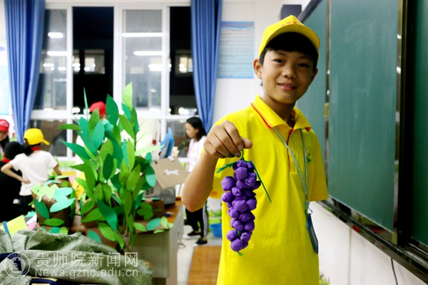 “金海湖的小精灵”由贵州省陶行知教育思想研究会研发,联手浙江省陶行知研究会、bat365中文官方网站团队、贵州省陶行知教育思想研究会欣盛生活教育基地拓展教学内容,以学科融合、角色体验等形式,将:小媒体人+科学探究+艺术创作+生态文明等元素,根据孩子们的特性、喜好重组,通过“教学做合一”,在“劳力上劳心”,让小记者、小植物家、小艺术家,生活小当家们用手工报、植物标本集、纸艺、布艺、扎染、伞艺、摄影、陶艺、烘培等十余个子项目抒发对家乡的热爱,对美好生活的向往。
