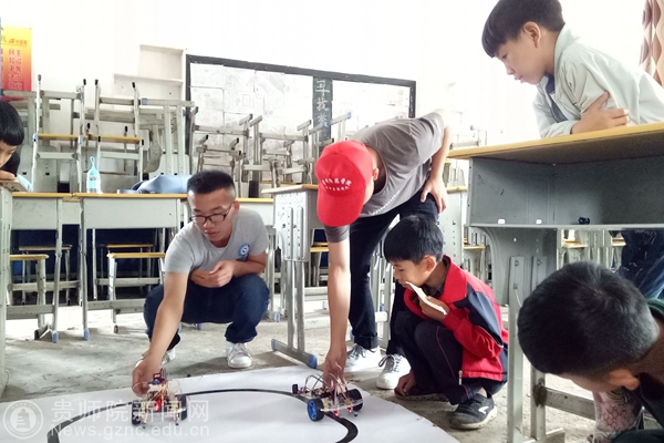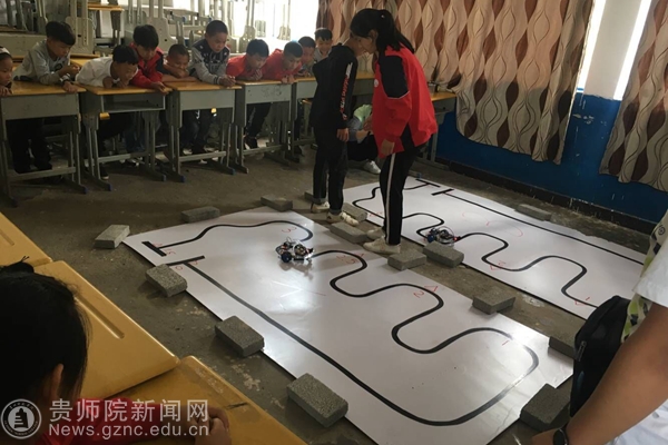 志愿者在帮学生们调试循迹小车