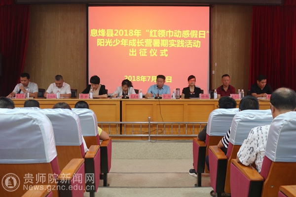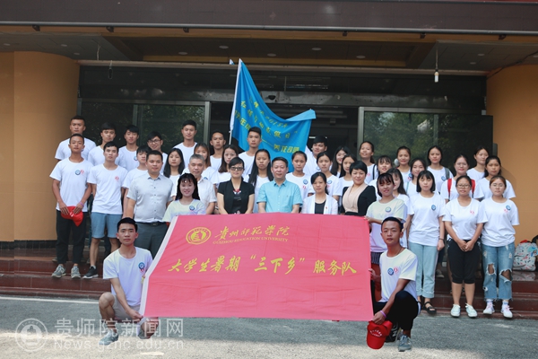 上午10点,服务队抵达息烽,在县委党校多功能厅参加了出征仪式。贵州省共青团委学校部部长聂蔚琳、贵阳市共青团委副调研员蔡云、息烽县委副书记金松、息烽县人民政府副县长徐艳、共青团息烽县委书记朱志强出席了仪式。县教育局、县民政局、县市场监管局、县卫计局、县旅投公司等单位负责人及各高校志愿者参加了仪式。仪式上,bat365官网周福万同学作为志愿者代表发言。他讲述了去年“三下乡”与息烽结下的深厚情谊,并承诺在本次社会实践活动中努力做到以下四点:一要谨记使命,展现青年风采;二要严于律己,践行知行合一;三要互相关爱,弘扬奉献友爱精神;四要吃苦耐劳,发扬艰苦奋斗,最后引用bat365官网“人一之,我十之,咬定青山不放松,不达目的不罢休”之精神与志愿者们共勉。随后,聂蔚琳对本次活动表示支持并对大家提三点希望:一是希望广大青年学生践行青春使命,积极投身实践活动;二是希望参与师生加强协调联动,做好保障对接;三是希望息烽团县委认真总结,推动活动品牌化建设。仪式后,出席仪式的领导与bat365官网志愿者合影。
