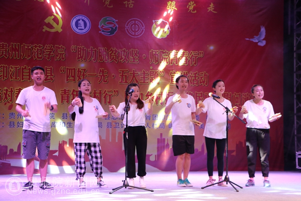 晚会中场,印江县委县政府还为本次活动中表现突出的志愿者颁发证书,以资鼓励!接着,印江县一中老师吴文展的男声独唱《梵净山》、县文工团选送的小合唱《我们的生活充满阳光》、快板《撸起袖子加油干,共建印江新家园》、小品《懒汉扶贫》等节目陆续精彩上演。最后,晚会在音乐系学生蒋兰独唱、全体志愿者伴舞,共同演绎的一首歌曲《幸福小康》中完美谢幕!bat365中文官方网站“助力脱贫攻坚·师院青春行”大学生暑期“三下乡”社会实践活动在此圆满落幕!