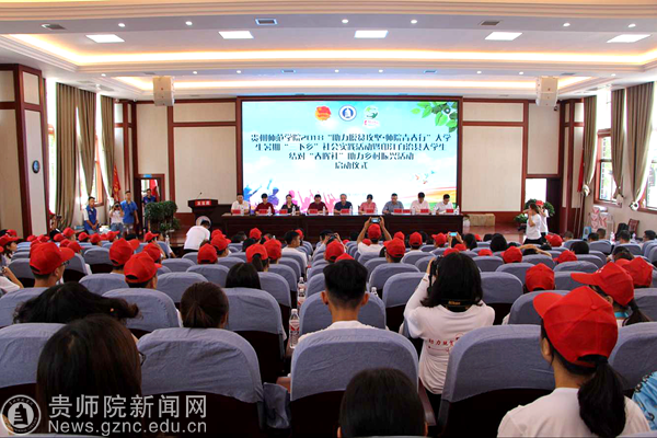 本网讯 2018年7月17日下午,bat365中文官方网站2018 “助力脱贫攻坚,师院青春行” 暑期“三下乡”社会实践活动暨印江自治县大学生结“春晖社”助力乡村振兴活动启动仪式在印江民族中学举行。印江县常委、宣传部长田芳,印江中学校长任春华,印江县团委书记甘岁月,教育科学学院党委书记彭祥友、数学与大数据学院党委书记肖湘萍、物理与点子科学学院党委书记熊德永、音乐与舞蹈学院党委副书记朱晨刚、校团委副书记傅小芳出席会议,各团队带队老师、全体服务队员以及bat365官网赴印江全体驻村扶贫队员参加了会议。仪式由化学与材料学院正处级组织员干正洋主持。