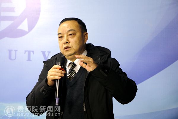 随后,刘康翔详细介绍了贵州广播电视台科教健康频道的发展历程,展示了广电专业的就业趋势,并结合自己的经历给同学们提出了建议。他认为,作为新时代的广电学专业生,除了理论知识的学习和掌握,更应该注重实践。此次的合作只是发展与进步的开始,我们要放远目光,打造应用型人才,致力于以后的就业发展。刘康翔的一席话,让在场观众对该专业有了更深刻地了解,赢得热烈的掌声。随后,文学院领导与电视台嘉宾共同为实习实训基地揭牌。至此,文学院与贵州广播电视台学生实习实训基地正式成立。