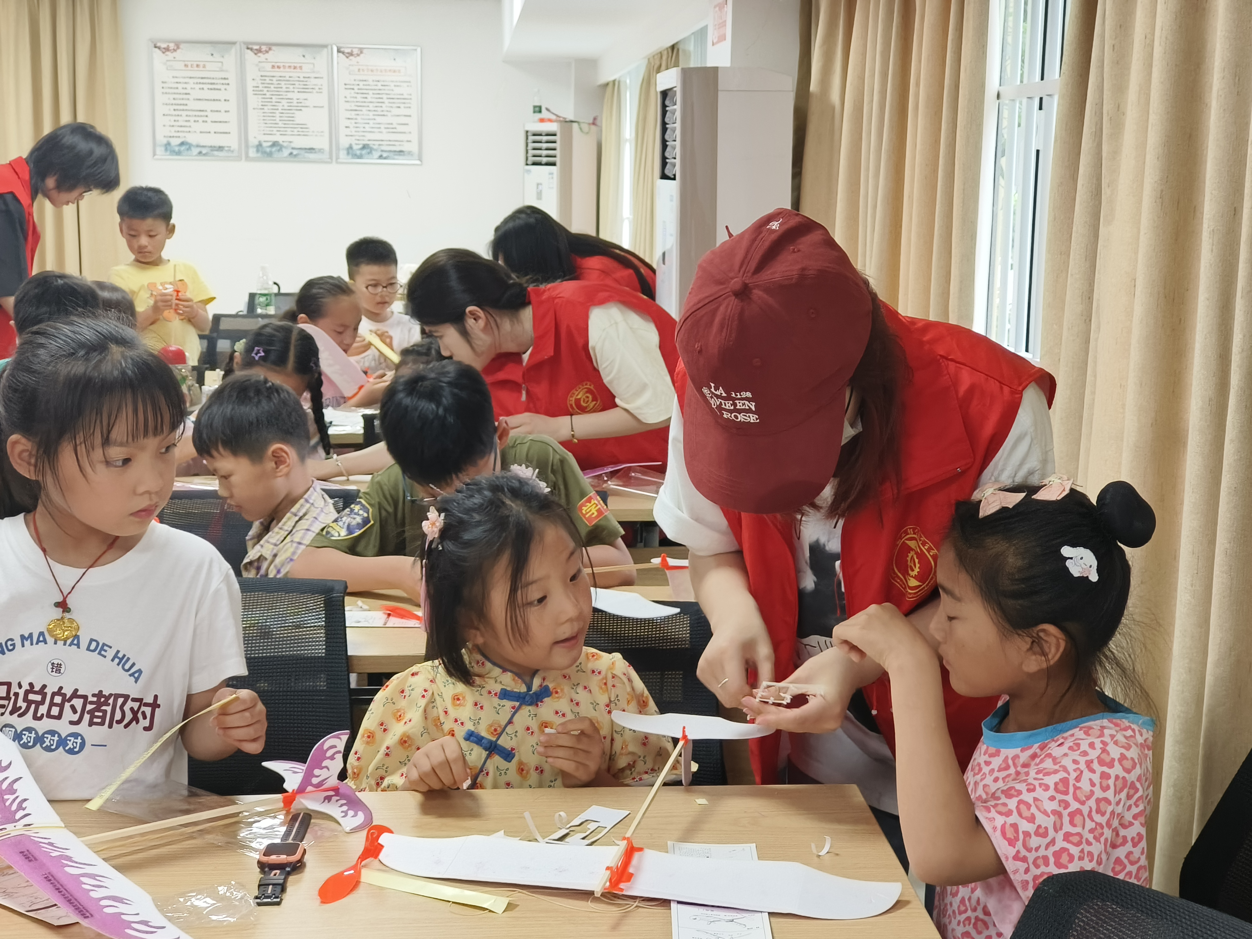 在随后的实践拼装环节中,志愿者们为小朋友们分发了航模拼装包,并带领他们亲手拼装航模机。小朋友们通过亲手操作,不仅加深了对航模机构造的理解,还体验到了动手制作的乐趣。拼装完成后,小朋友们还模拟了航模机的起飞过程,进一步加深了对航模飞行的认识。