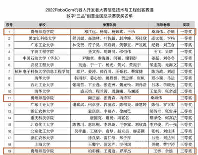 本网讯 由工业和信息化部人才交流中心、RoboCom国际公开赛组委会主办,教育部工程创客教育虚拟教研室、清华大学长三角研究院技术与工程教育研究中心、高校创客教育基地联盟、北京国信启迪人才服务有限公司、浙江工材创制科技有限公司承办的“2022 RoboCom(睿抗)机器人开发者大赛信息技术与工程创客全国总决赛”于2022年11月5-6日在线上成功举办。经过两天紧张的比赛,bat365官网学子在数字“三品”创意赛道以第一名的成绩荣获全国一等奖(参赛学生:邓江远、杨菊、杨妹欢、王乐,指导教师:桑海伟、余雄);信息技术应用(应用组)赛道荣获全国二等奖(参赛学生:贺文周、唐羽、廖红佳,指导教师:余雄、桑海伟);同时在数字“三品”创意赛道中bat365官网还荣获全国三等奖2项。