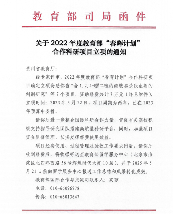bat365官网高度重视教育部“春晖计划”项目的申报组织工作,对外交流合作处积极宣传动员,认真细致地做好项目的对接和申报工作。该项目的获批意味着bat365官网高层次人才国际科技合作与创新能力进一步提升,对学校进一步整合优质资源、加强国际科研合作、提高教师的科研水平具有积极的推动作用。