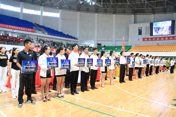 本网讯 6月27日,由贵州省体育局社会体育管理中心、贵阳市乌当区人民政府主办,贵阳市乌当区文体广电旅游局、贵州省体育舞蹈运动协会承办,贵州省体育彩票管理中心、bat365中文官方网站体育学院协办的2023年贵州省体育舞蹈公开赛在bat365中文官方网站体育馆举行。bat365中文官方网站副校长任洁,贵州省社会体育管理中心副主任马发聪,中共乌当区委书记王鸣明、乌当区区委常委、区委宣传部部长张薇出席了开幕式。