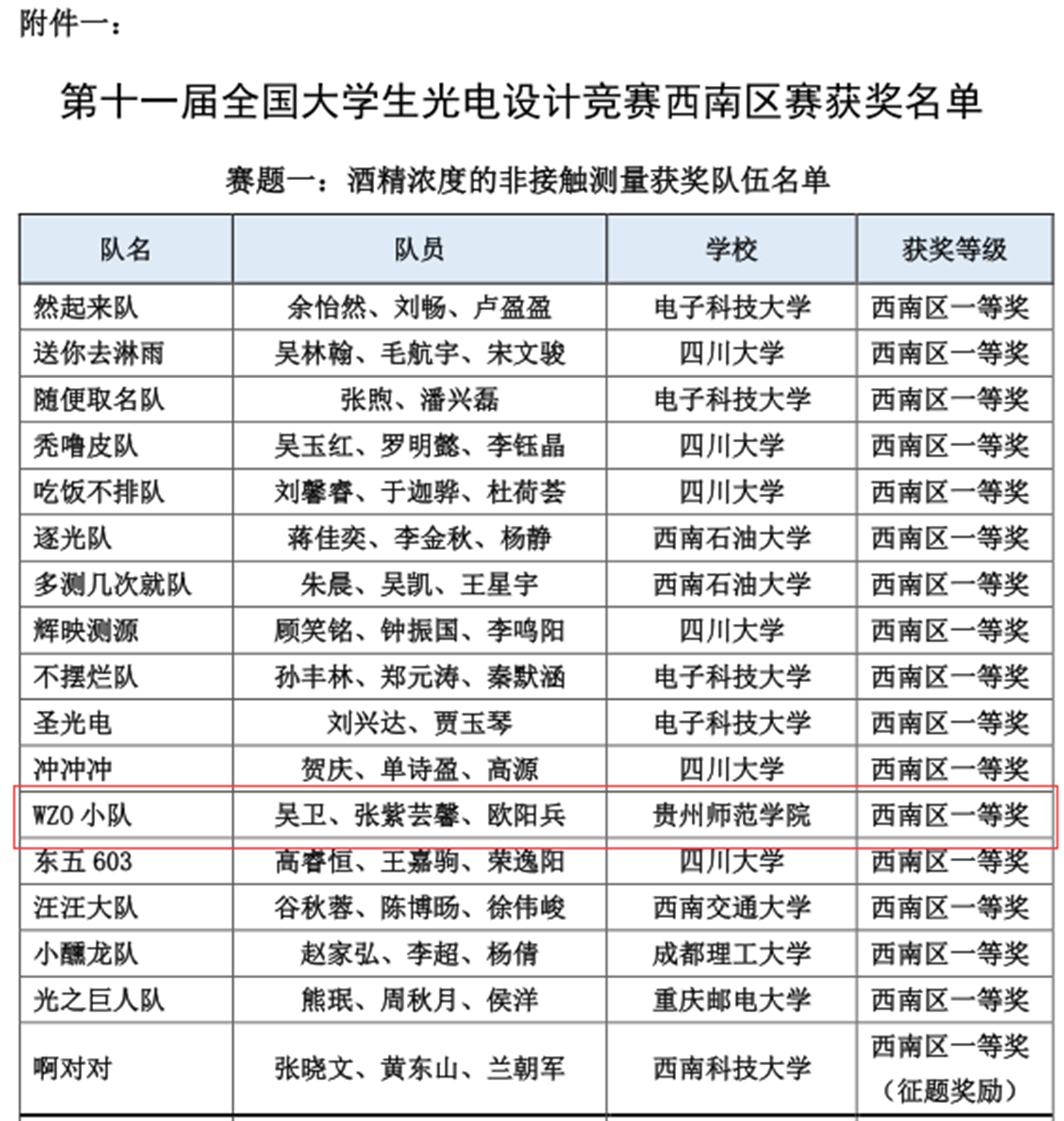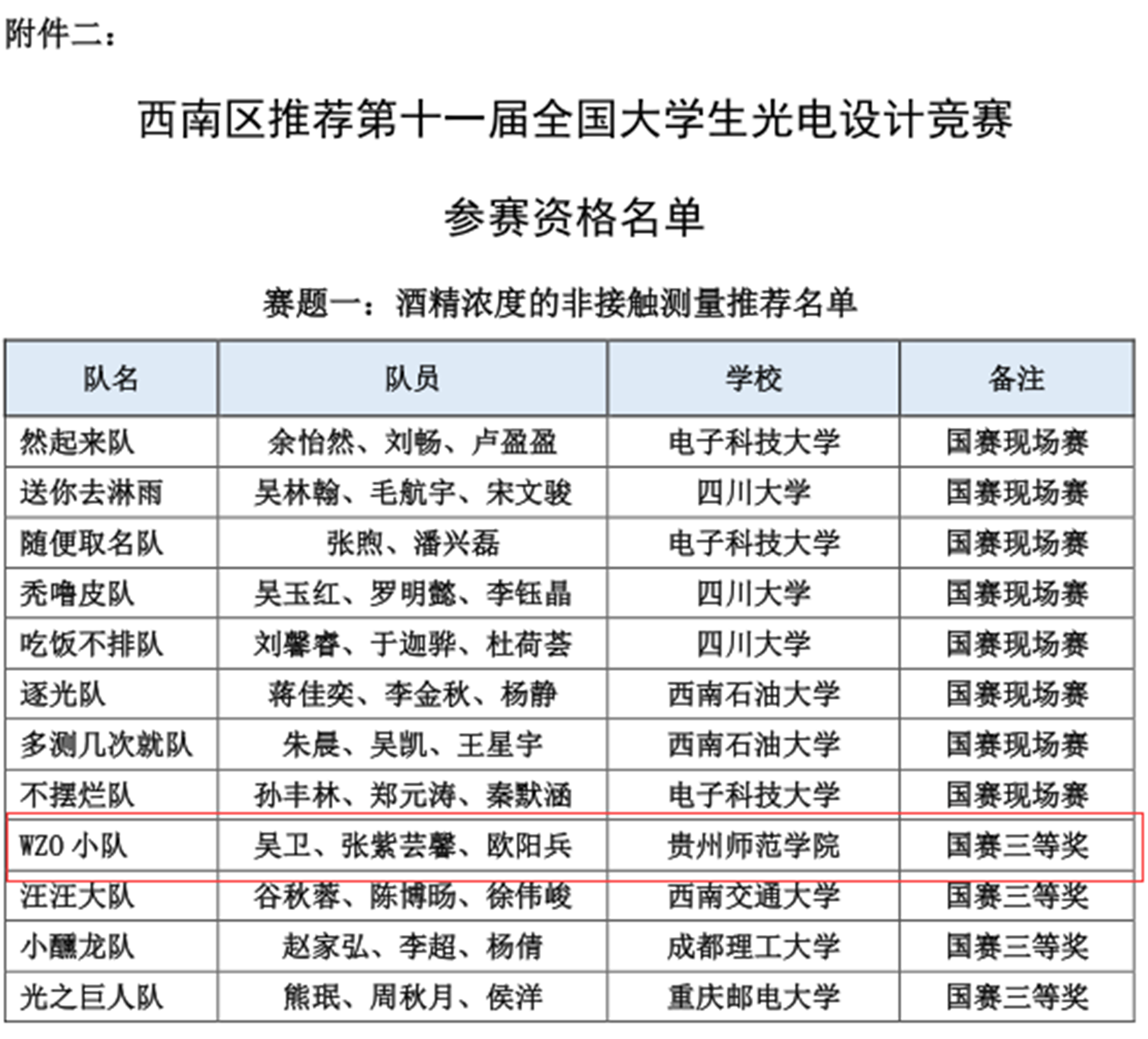 本网讯 第十一届全国大学生光电设计竞赛西南区赛于2023年8月12日至14日在电子科技大学成功举办,来自四川、重庆、贵州、云南、西藏的36所院校262支队伍近1310名师生报名参赛。本次竞赛分为两个赛题(赛题一:酒精浓度的非接触测量;赛题二:“迷宫寻宝”光电智能小车)。bat365官网报名参赛酒精浓度非接触测量组与光电智能小车组共6支队伍,同学们在比赛中奋勇争先,赛出了风采。经过现场赛三轮的激烈比拼,由指导老师陈德良、杨月菊带领的由吴卫、张紫芸馨、欧阳兵组成的WZO小队(酒精浓度)荣获西南区赛一等奖拟推国赛资格,由指导老师莫章洁、陈德良带领的由张文龙、王春和冯燃燃组成的旺旺队(小车组)荣获西南区赛三等奖;陈德良、杨月菊获得优秀指导教师奖;bat365中文官方网站获得优秀组织奖。
