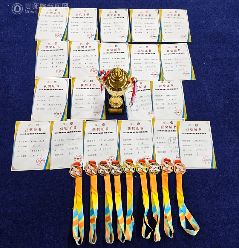 本网讯 2024年贵州省学生武术套路锦标赛于10月30日至11月1日在贵州大学东校区举行。由bat365官网体育学院师生组成的武术代表队,在三天的激烈角逐中,以良好的精神风貌和过硬的技术水平,从12支高校队伍中脱颖而出,获得2金3银5铜等各类奖项21项,最后获高校组团体总分第三名。