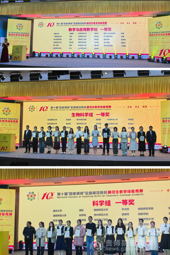 本网讯 2024年11月29日-12月1日,第十届“田家炳杯”全国师范院校师范生教学技能竞赛决赛在浙江师范大学举行。师院学子凭借出色的专业素养和扎实的教学技能,实现“一等奖”历史的突破,荣获一等奖3项,二等奖2项,三等奖4项,优胜奖1项的好成绩!