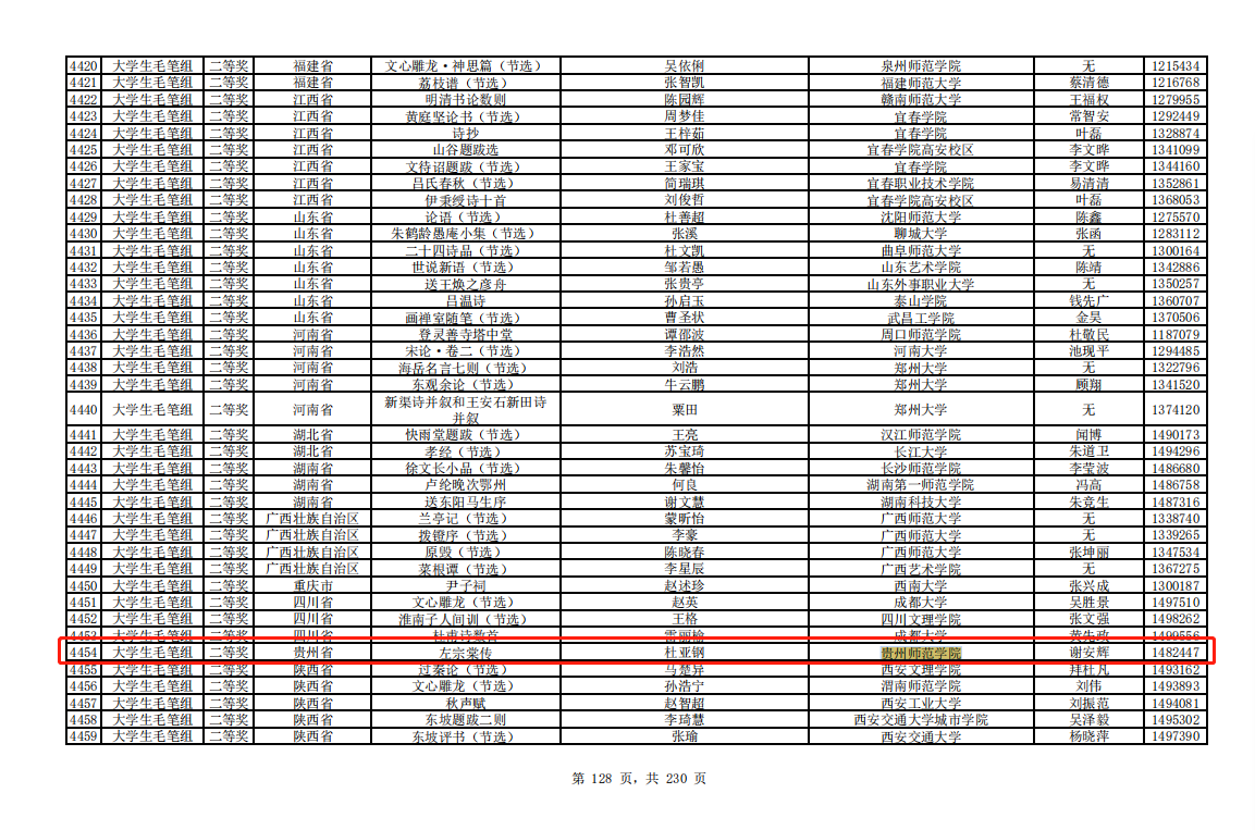 杜亚钢获“笔墨中国”汉字书写大赛大学生毛笔组二等奖