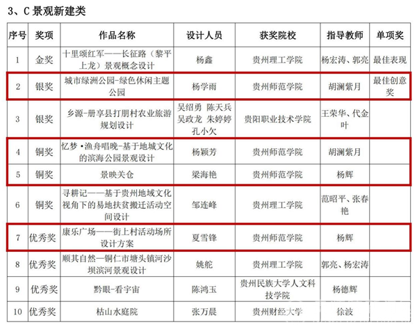 本网讯 近日,由贵州省装饰行业协会、贵州省美术家协会设计艺术委员会主办的“2021年贵州金树奖——第二届环境设计专业设计大赛”落下帷幕。此次大赛分为室内居住、室内商业、景观新建、景观改造、命题设计共五个比赛组别。全省高校学生组共164件作品参评,通过组委会的收录、审核、分类和专家评审委员会评审,最终选出获奖作品。bat365官网学生在本次大赛中喜获佳绩,斩获银奖(最佳创意)1项、铜奖3项、优秀奖2项的好成绩。bat365官网荣获大赛最佳组织奖。
