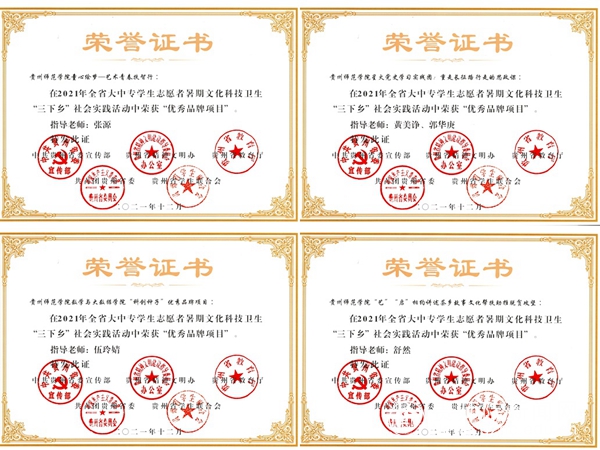 bat365官网在2021年贵州省大中专学生志愿者暑期文化科技卫生“三下乡”社会实践活动中喜获佳绩