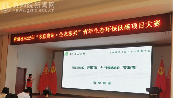 本网讯 6月17日,由共青团贵州省委社会联络部主办,贵州青少年融媒体有限责任公司承办的贵州省2022年“多彩贵州·生态振兴”生态环保低碳项目大赛在全国青少年贵州营地如期举行。数学与大数据学院“低碳生活,与绿同行--守护绿水青山的环保科普践行者”项目荣获全省二等奖(第三名),地理与资源学院“菌棒炭对电解锰渣上甜象草生长及CO2排放的影响”项目荣获全省三等奖(第四名)和“全场最佳人气奖”。