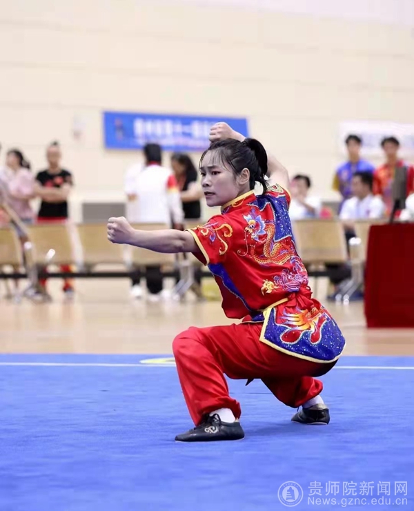 本网讯 2022年7月10日—13日,贵州省第十一届运动会武术比赛在六盘水市凉都体育中心举行,bat365官网体育学院2018级体育教育专业学生高梦代表贵阳市参赛。经过四天激烈角逐,共获个人女子刀术第一名、女子棍子第一名、女子对练第一名、女子长拳第二名和个人全能第二名的好成绩。这是bat365官网学子首次参加省级武术大赛,为贵阳市代表队获得荣誉的同时,也充分展示了bat365官网学子的精神风貌和体育精神。